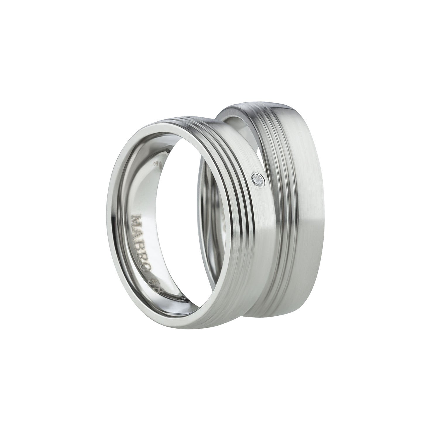 Im Damenring setzt ein dezent gefasster Zirkonia einen feinen Lichtakzent, der das klare Design stilvoll ergänzt. Der Herrenring greift die Linienführung ohne Steinbesatz auf und wirkt maskulin, harmonisch und zeitlos.