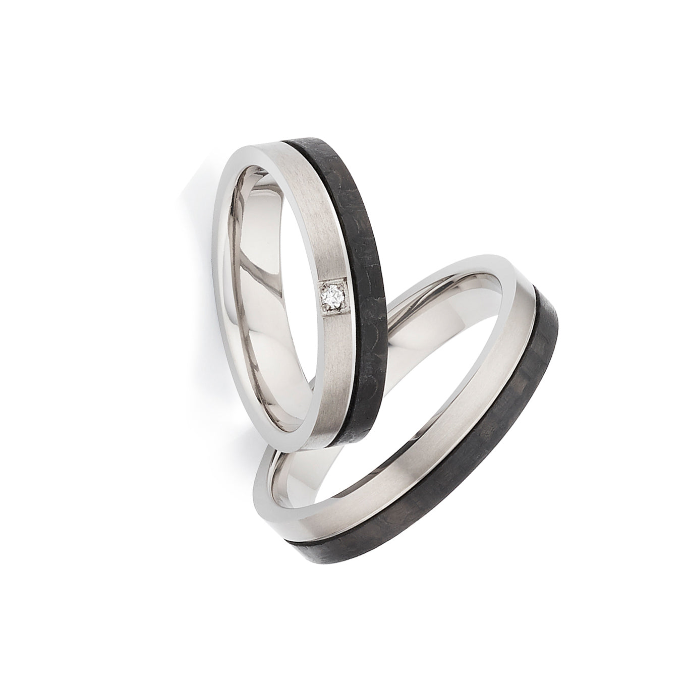 • Edle Partnerringe aus Carbon und Titan mit Diamant