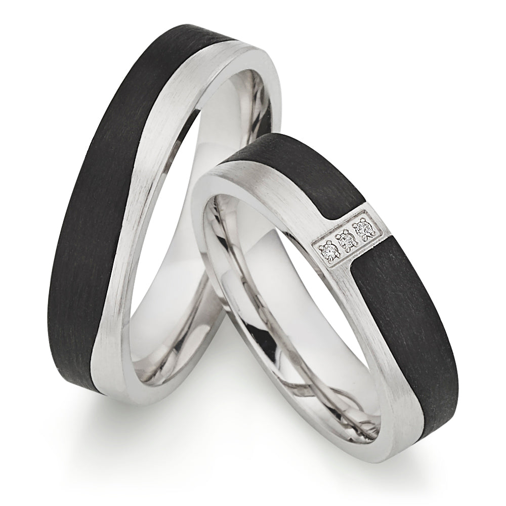 Ehe - Partnerringe aus 925Silber und Carbon mit Zirkonia ink. Gravur | SR 1942