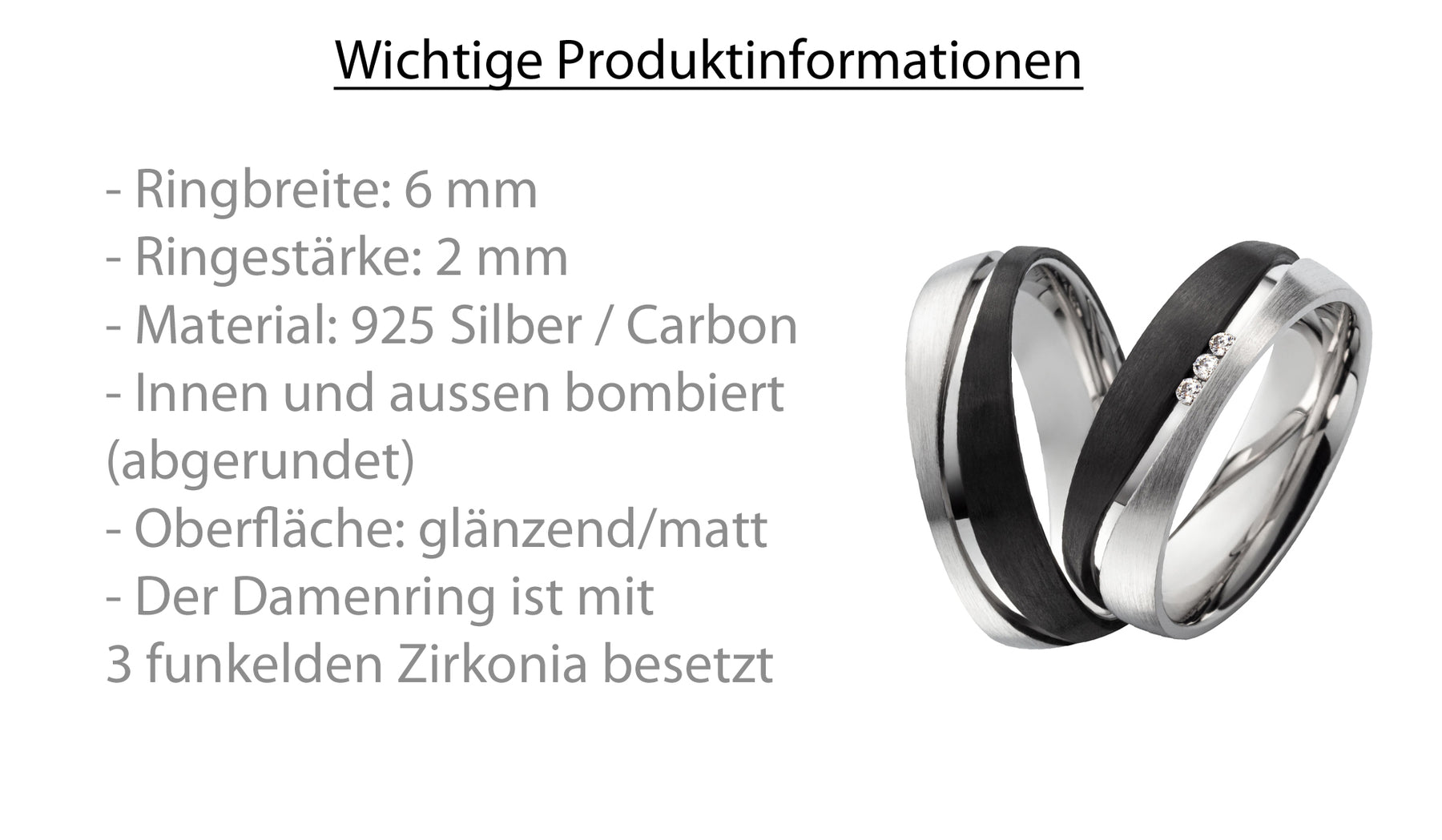 Die SilverCarbon Trio Partnerringe vereinen klassisches Silber, modernes Carbon und funkelnde Zirkonia zu einem eleganten, zeitlosen Ringpaar.