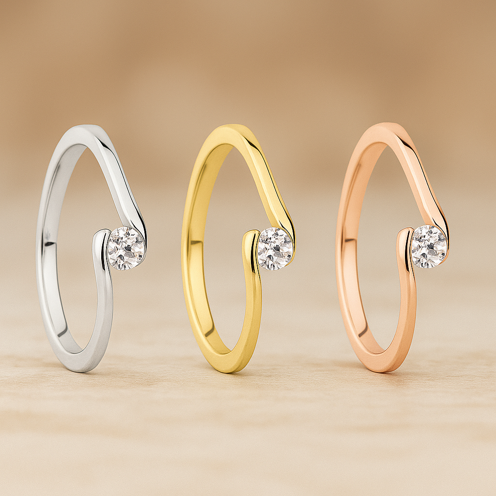 Es beginnt mit einem Blick, einem Lächeln, einem Gefühl, das bleibt. Aus einem Moment wird ein Versprechen. Ein Ring fängt genau diesen Augenblick ein – für immer getragen, für immer verbunden.